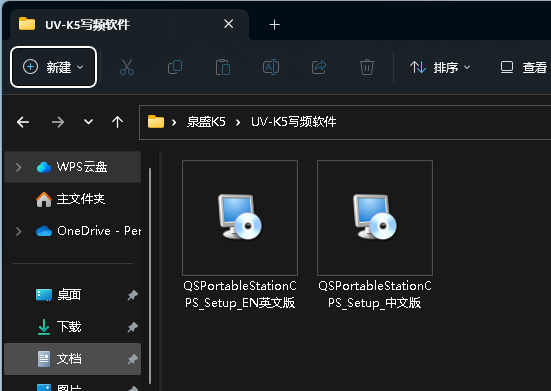 把UV-K5写频软件解压缩,可见用于安装的setup软件分为中、英文两款(针对国内与海外用户),实际操作界面是一样的,只不过是语言文本的不同。
