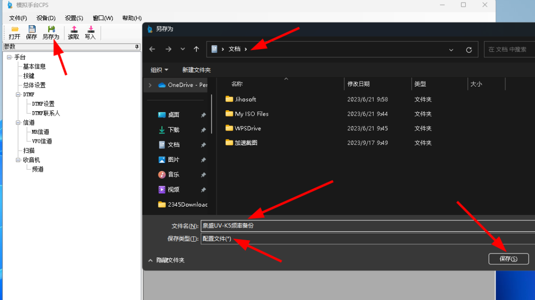 如果是单位采购回来的多台对讲机,需要设置成统一的参数,我们则可以将已经设置好的参数进行配置文件的“另存为”,以便于有需要时直接从软件中打开,写入对应的对讲机之中。