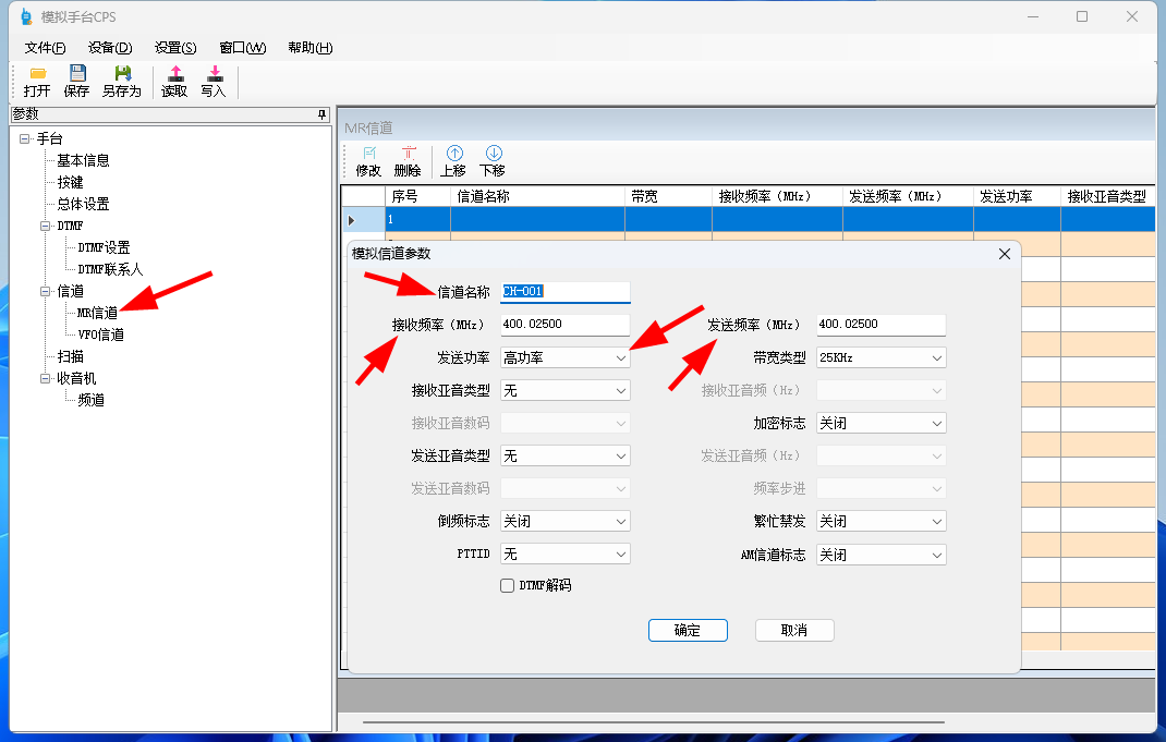 “MR信道”:对一些常用U段频率进行信道(名称)的标识命名及相应具体要求的设置,如:通信时发射功率的高低等。