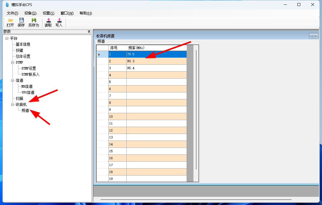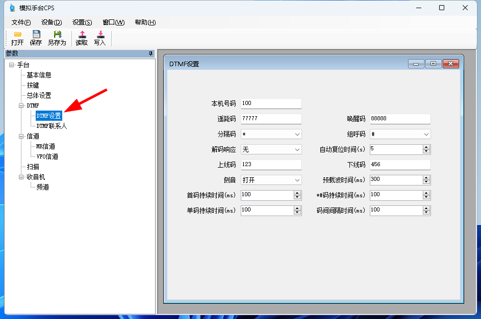通过写频软件主界面左侧的参数栏,我们可以查看到对讲机的基本信息: